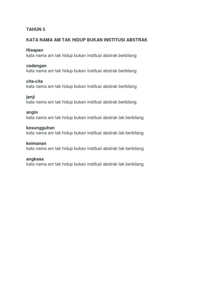 Kata Nama Am Tak Hidup Bukan Institusi Abstrak Tahun 5