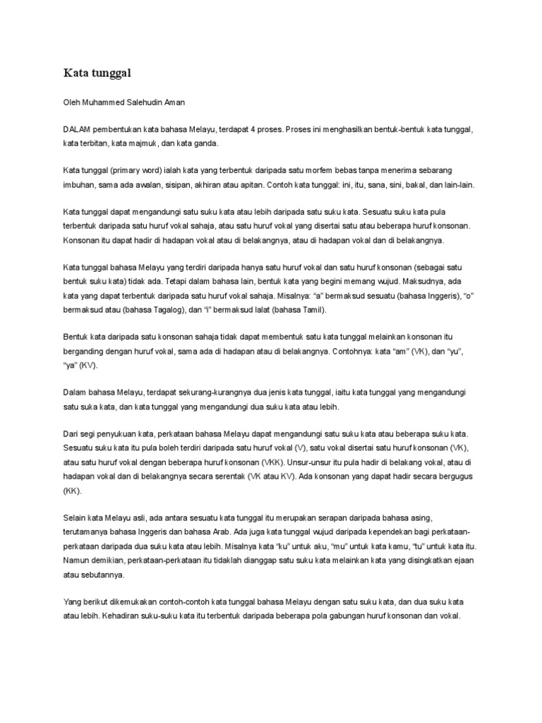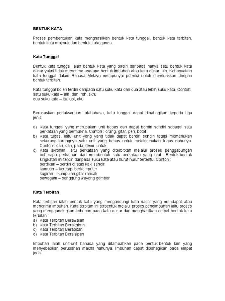 Penggal 2 Bentuk Kata Kata Tunggal Pdf