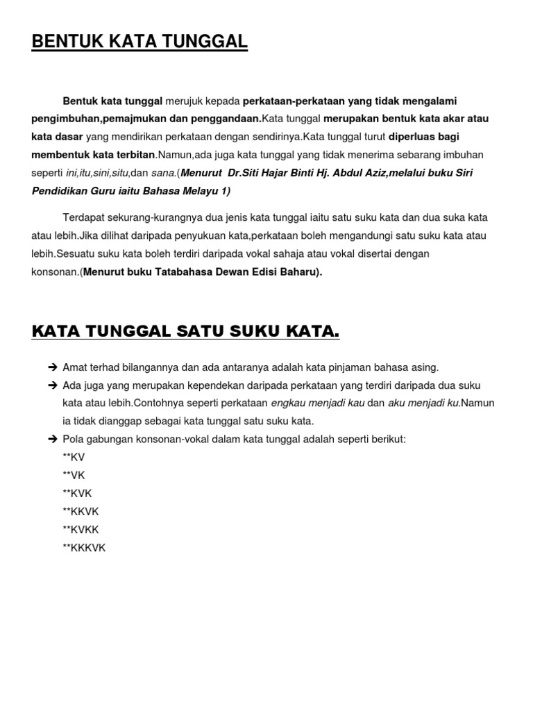 Penggal 2 Bentuk Kata Kata Tunggal Bahasa Melayu Stpm Kertas 2 910 2 Nota Penggal 2 Morfologi Bentuk Kata Kata Tunggal 1 Konsep Kata Tunggal Ialah Course Hero