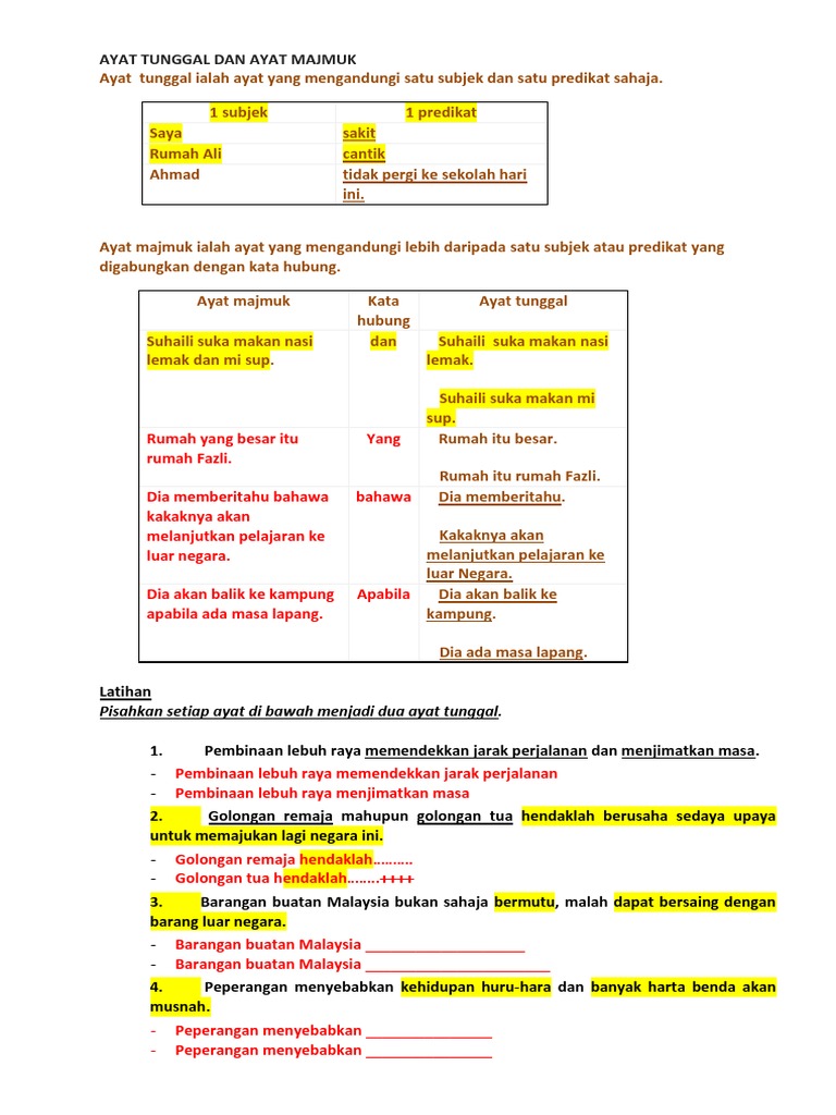 Doc Ayat Tunggal Dan Ayat Majmuk Zuhairi Saiaan Academia Edu