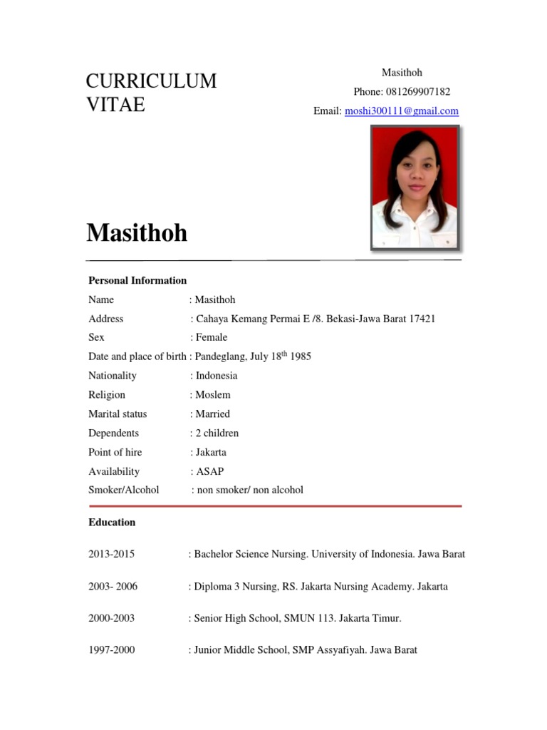 Chimo Ngeblog Contoh Cv Resume Daftar Riwayat Hidup Job Application Sample English