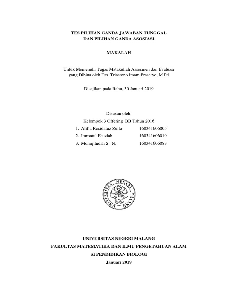 Makalah Tes Pilihan Ganda Jawaban Tunggal Dan Tes Pilihan Ganda Asosiasi Fix