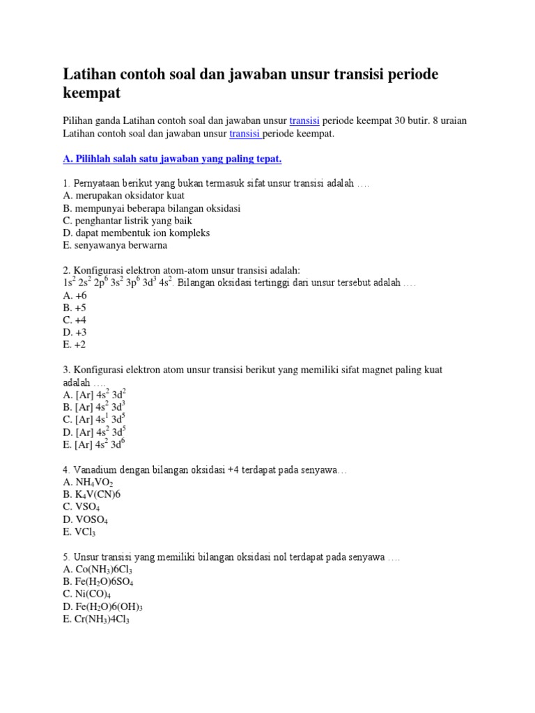 Latihan Contoh Soal Dan Jawaban Unsur Transisi Periode Keempat
