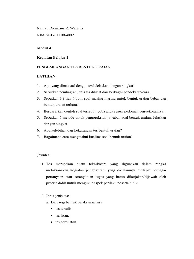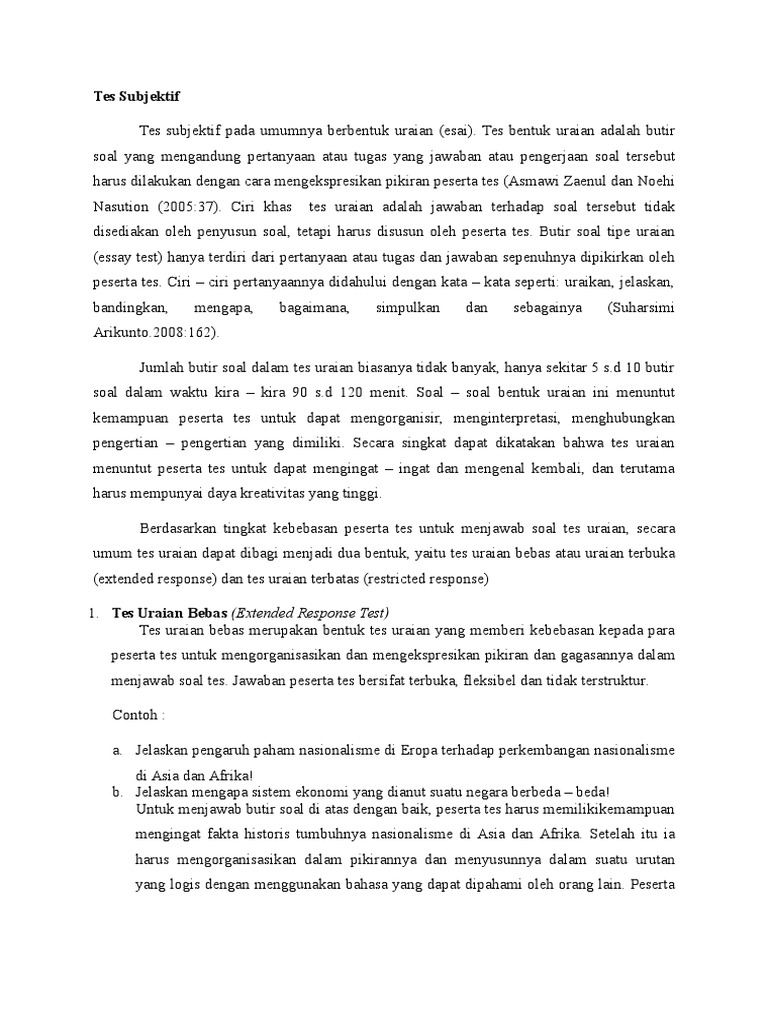 Tes Subjektif Esai Pengertian Jenis Penyusunan Dan Contoh Rijal Akbar