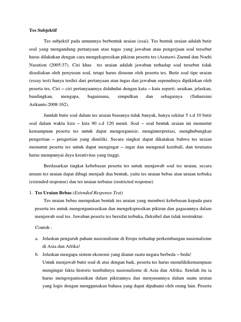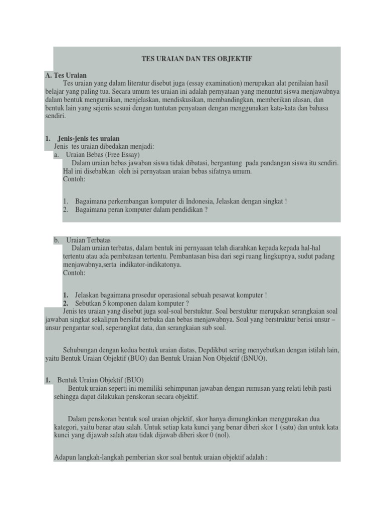 Doc Perbedaan Dari Tes Uraian Essay Dan Tes Objektif Tk Katolik Santa Maria Academia Edu