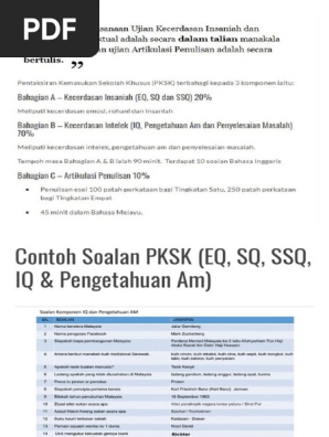 Contoh Soalan Pksk 2020 Kemasukan Sekolah Khusus