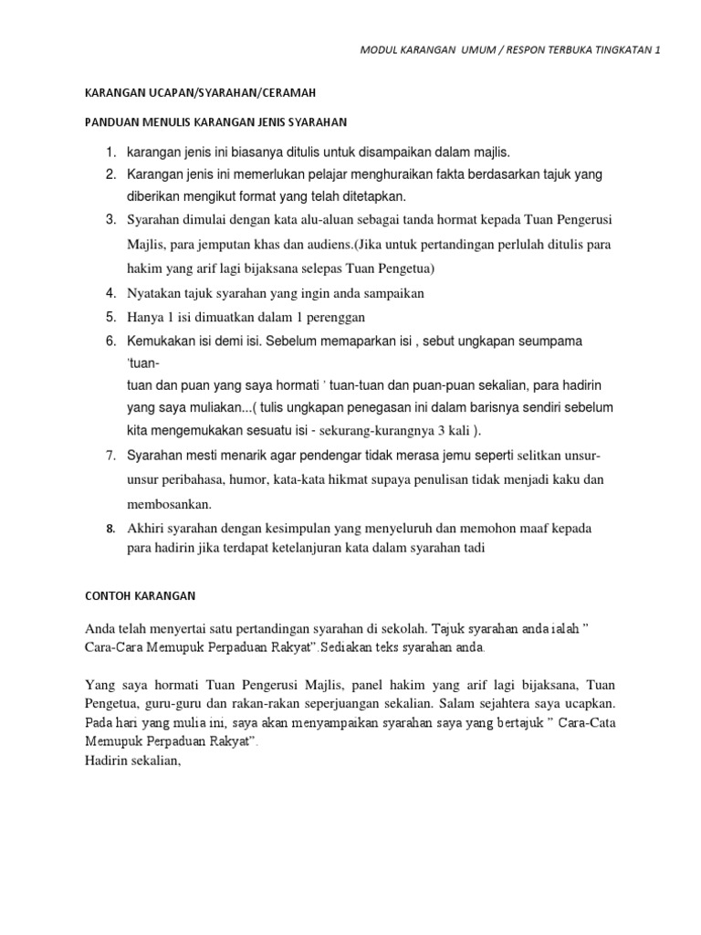 Karangan Bahasa Arab Tingkatan 1 Pembangunan Contoh Penulisan Karangan Pidato Laman Bahasa Cikgu Pdf Document