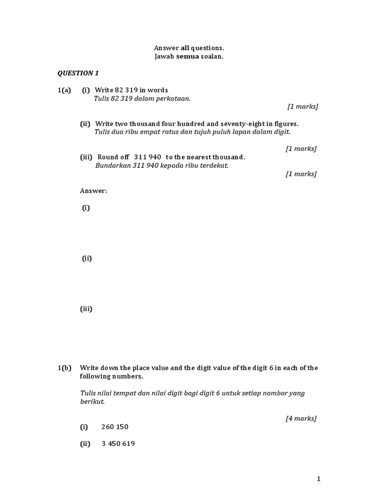 Contoh Soalan Matematik Kertas 2 Thn 3 Info Melayu
