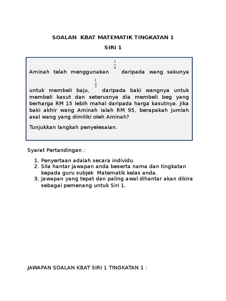 Soalan Kbat Matematik Tingkatan 1