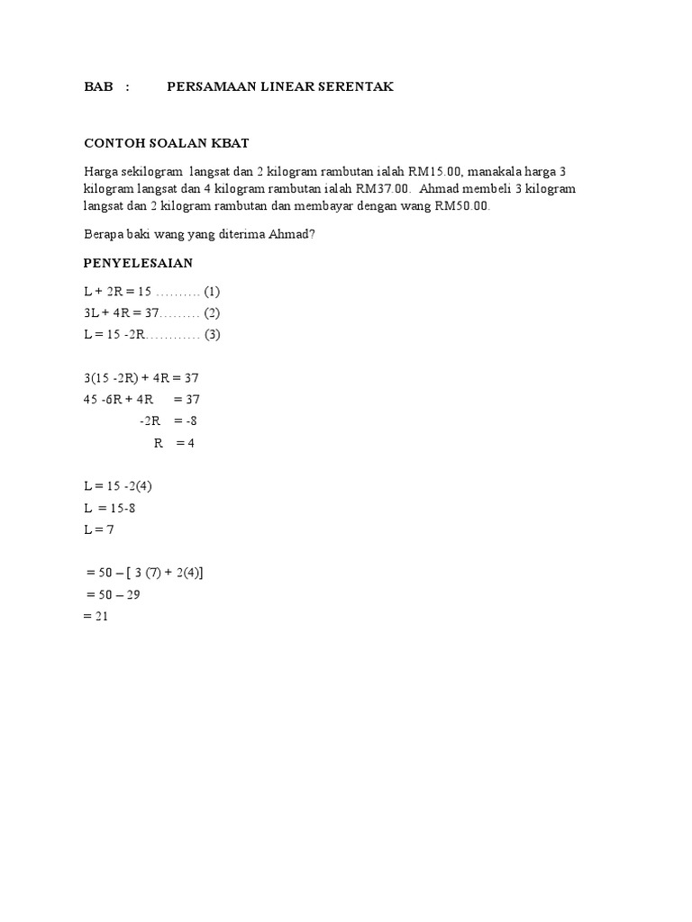 Modul Latihan Kbat Matematik Sekolah Rendah Kaedah Penyelesaian