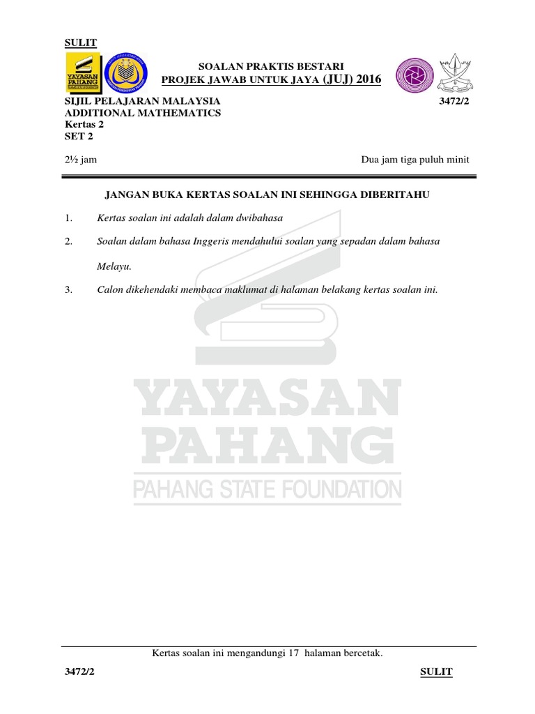 Kertas Matematik Tambahan Spm 2016 Sumber Pendidikan