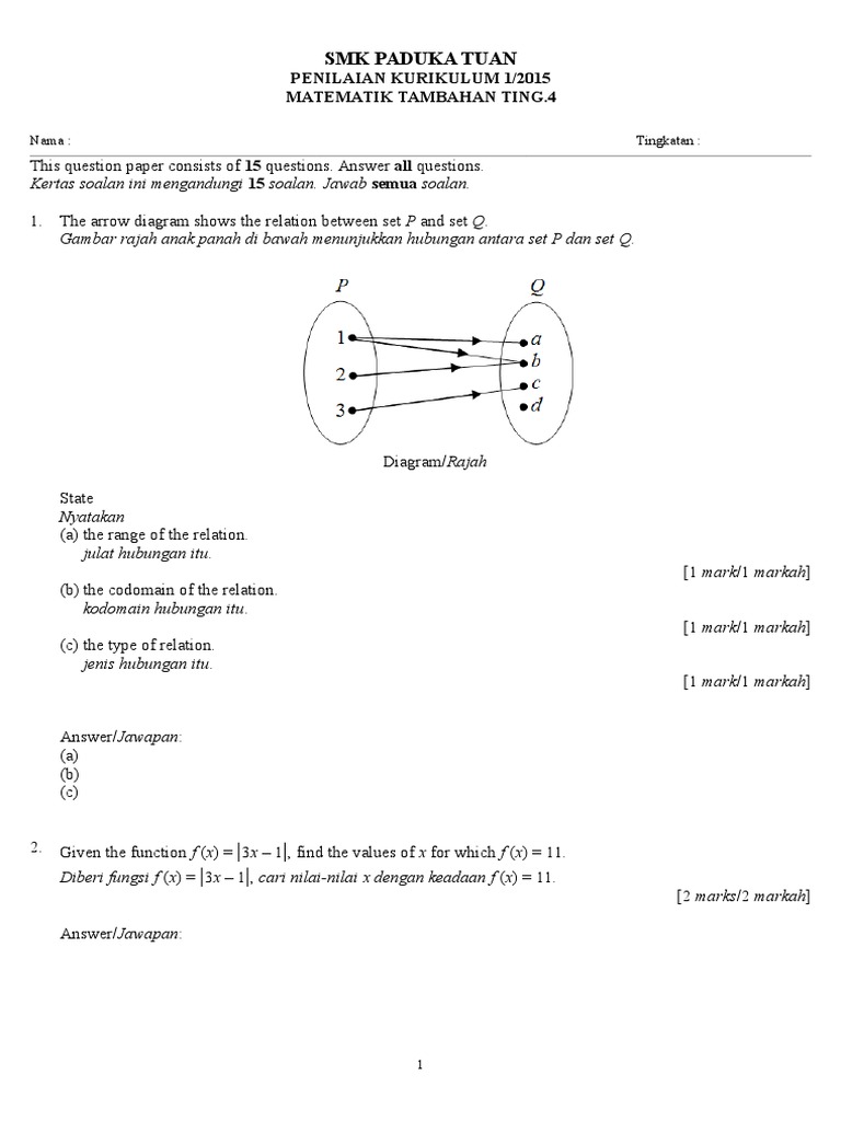 1 5 2 Fungsi Spm Praktis Soalan Pendek Matematik Tambahan Spm