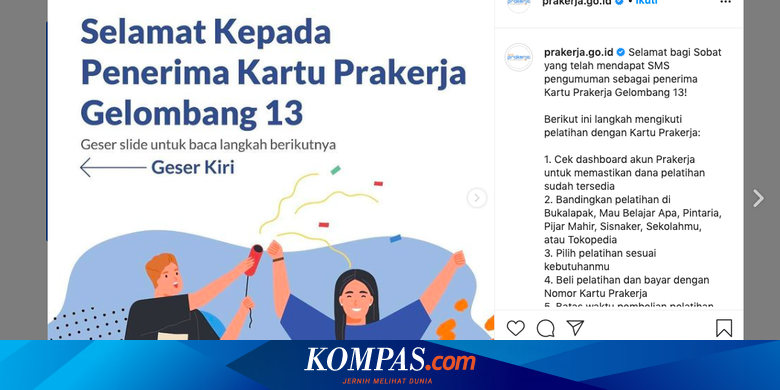 Cara Cek Pengumuman Penerima Kartu Prakerja Gelombang 13 Halaman All Kompas Com