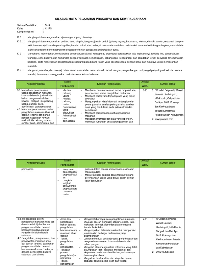 Silabus Prakarya Dan Kewirausahaan Kls Xi