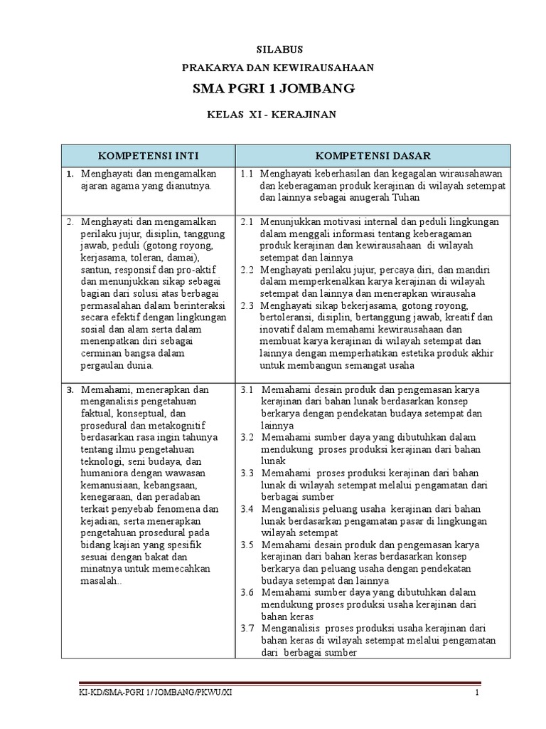 Silabus Produk Kreatif Dan Kewirausahaan Smk Kelas Xi Terbaru Bloggersiana